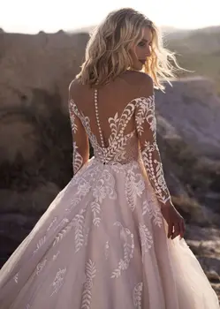 يزين الدانتيل الخامس الرقبة فستان زفاف مثير قطار كبير مع تصميم الدانتيل فساتين المناسبات مفصل