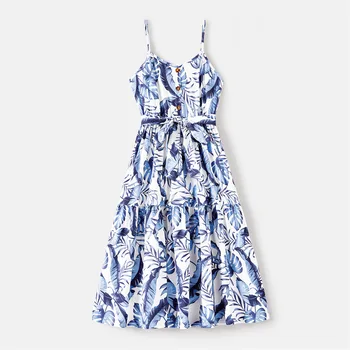 بدلة سباحة عائلية متطابقة من PatPat بدلة سباحة من قطعة واحدة مطبوعة بأوراق النخيل وحزام سباغيتي