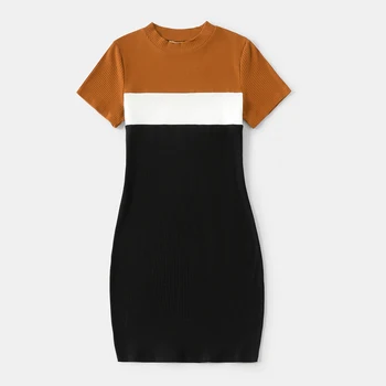 تي شيرتات PatPat Family المطابقة للقطن ذات الأكمام القصيرة ومجموعات الفساتين المخططة من شيفرون