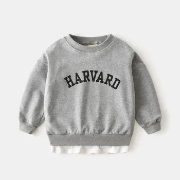 ملابس الأولاد والبنات سترة من قطعتين مزيفة بحروف خياطة للأطفال برقبة دائرية على الطراز الأجنبي
