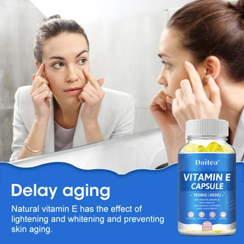 Natural vitamin E capsules support bone health, vision, hair and nail health, anti-aging