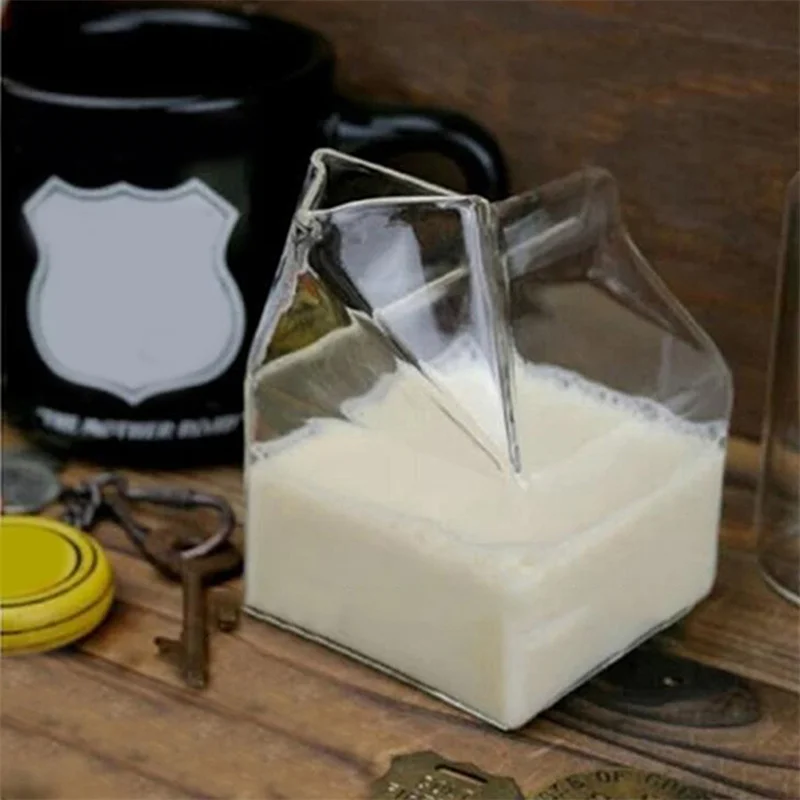 300ml Creative Transparent Milk Box Milk Box Shape Glass Cups Bottle for Drink