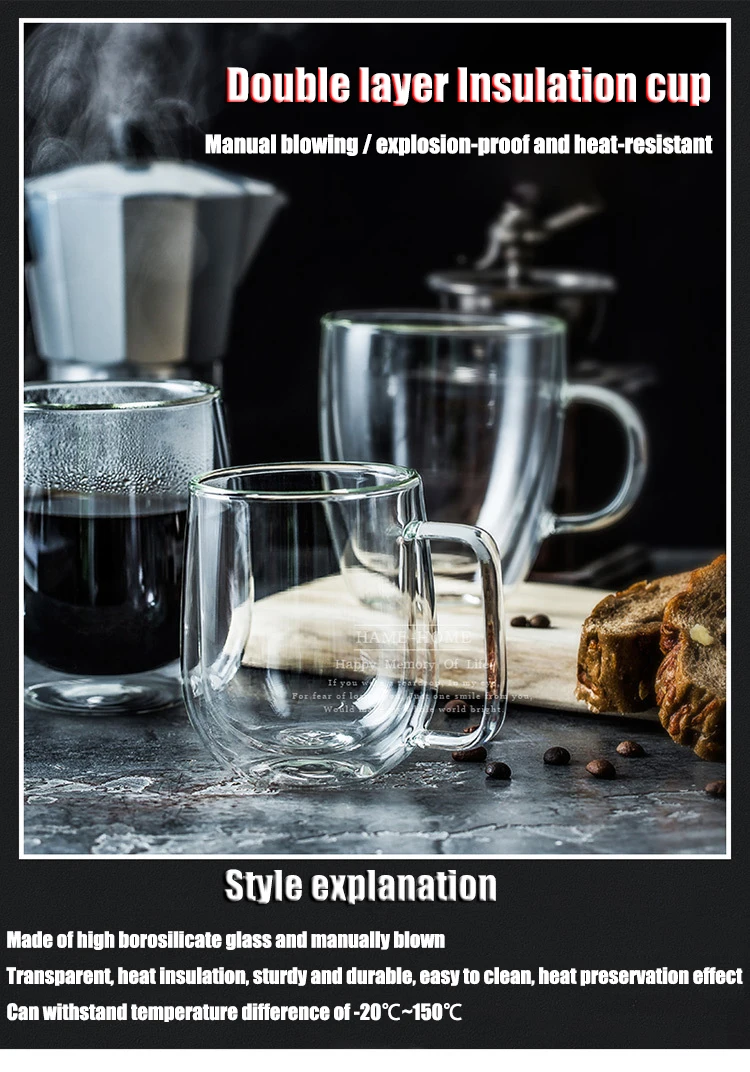 Double Wall High Borosilicate Glass Mug Heat Resistant Tea Milk Lemon Juice Coffee Water Cup Bar Drink ware