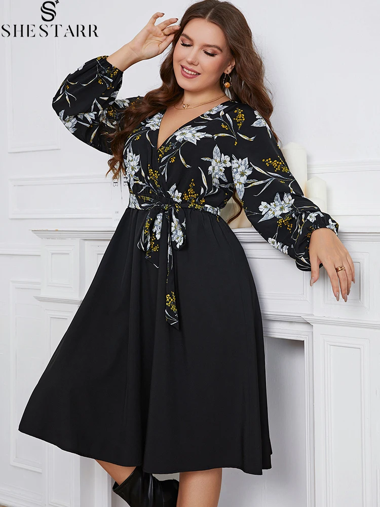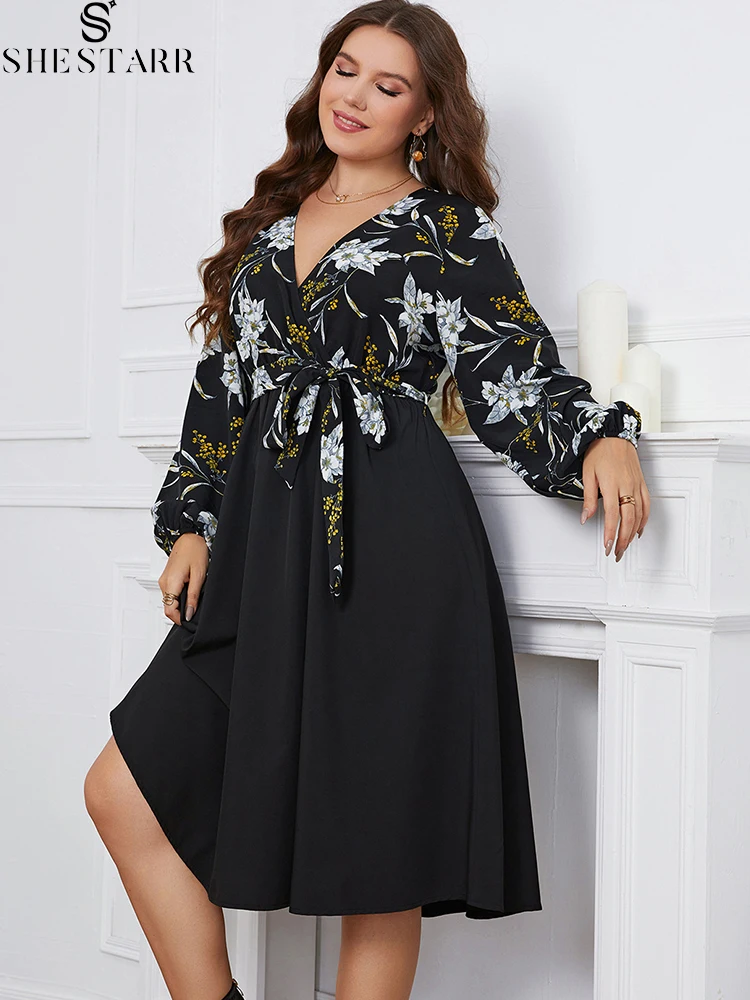 Floral Print Patchwork Lace Up Elegant Fall Wear Chubby Ladies