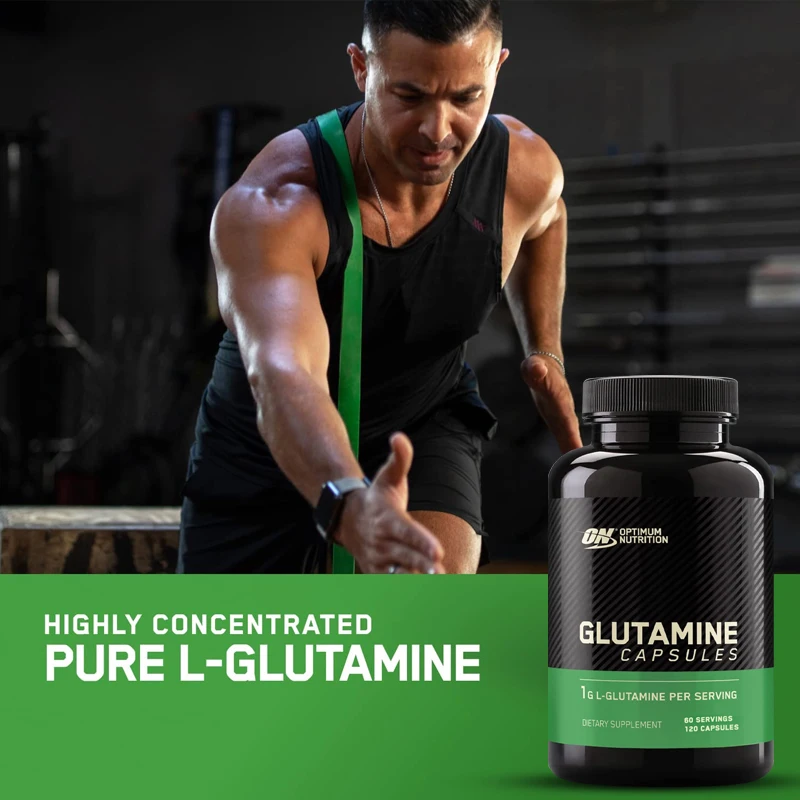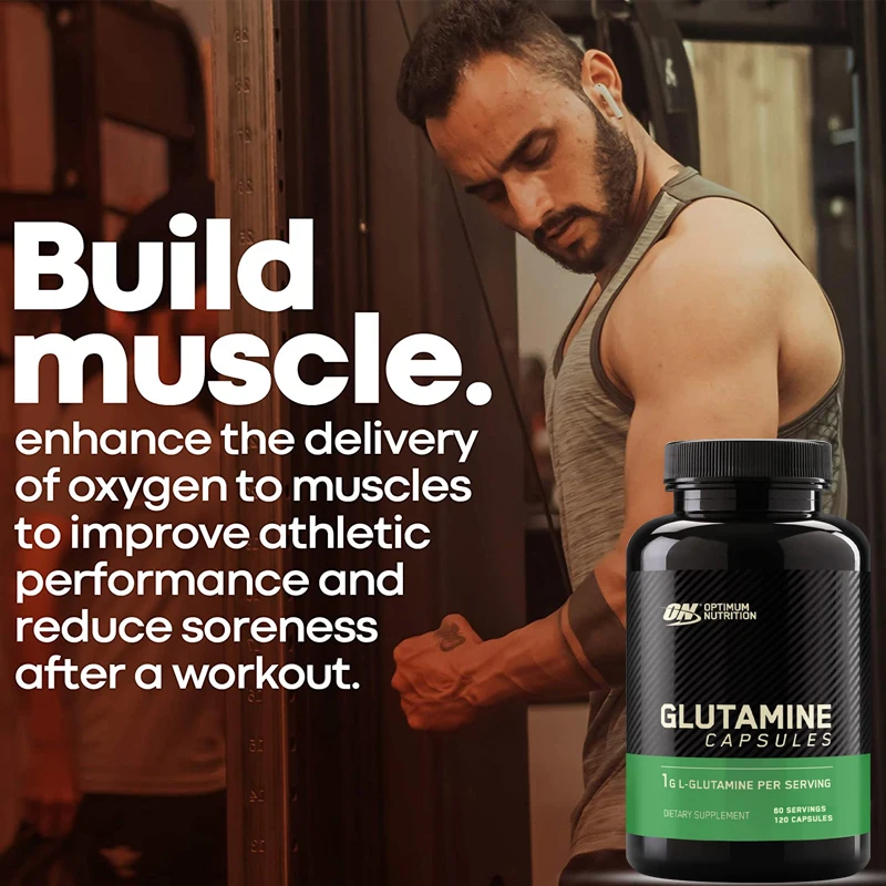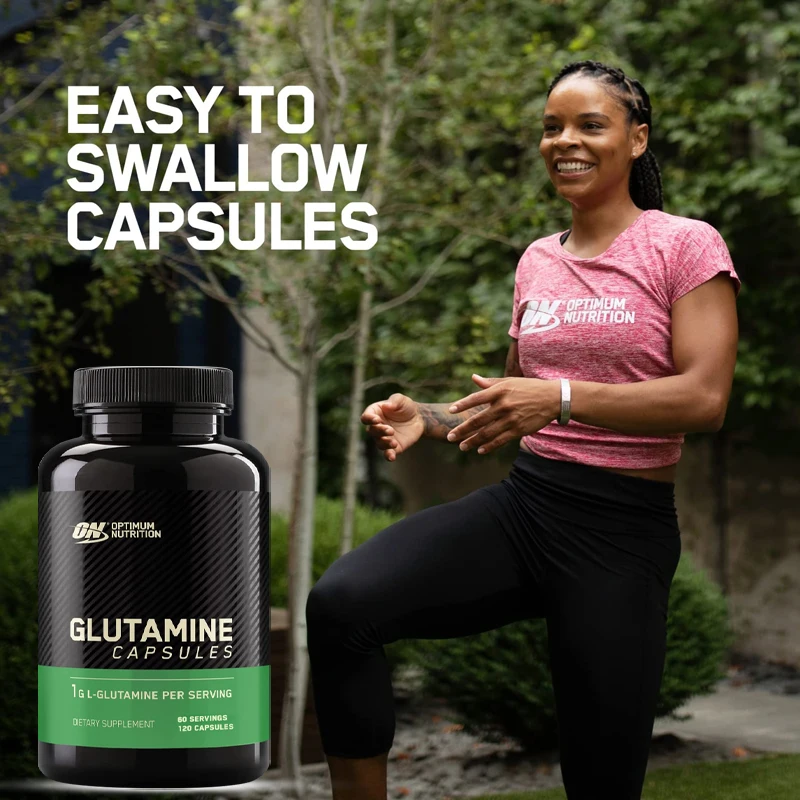Optimum Nutrition Glutamine 1000mg, 120 Capsules are the most abundant amino acid in the body and they help to Support Muscle Recovery.