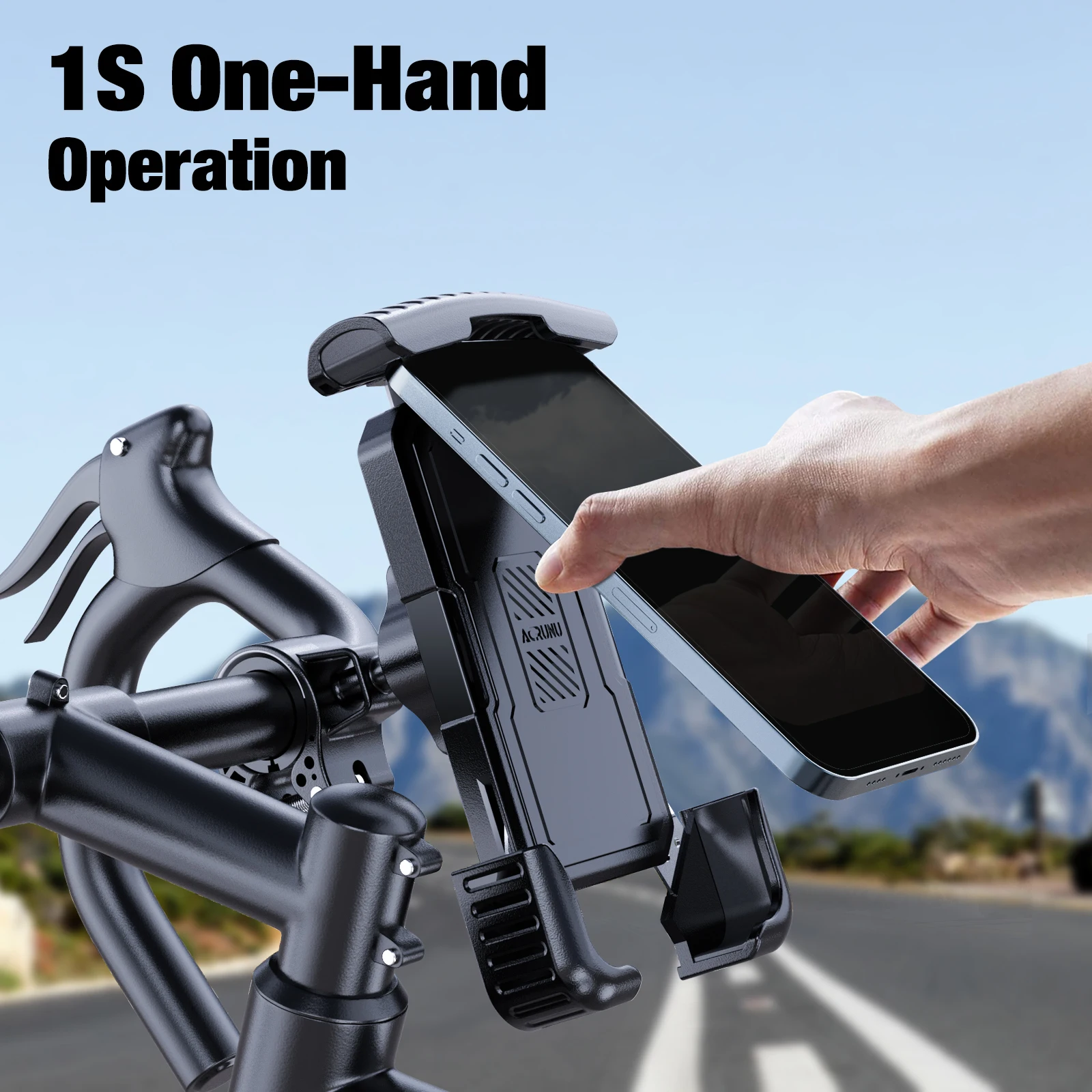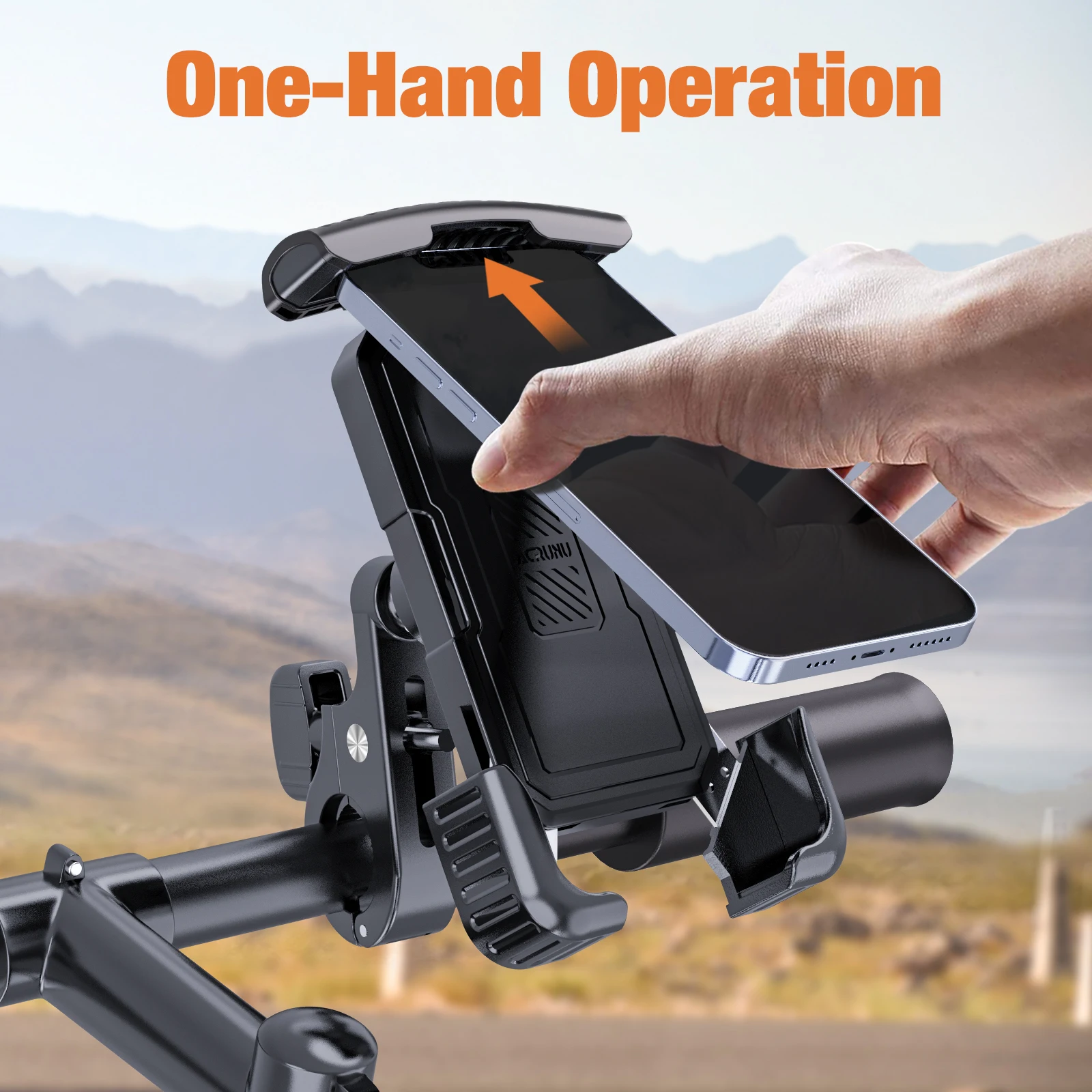 2022 Latest Motorcycle Phone Mount Features With A Upgraded Auto Lock Button. 1 Finger Will Auto Lock Your Phone With A Toggle, And Unlock By Toggle Up.