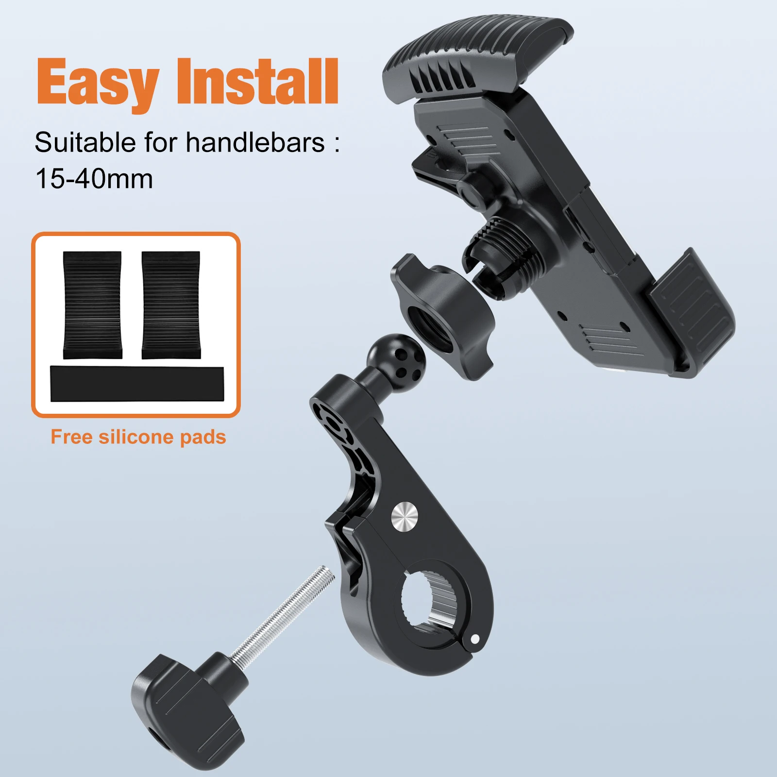 The Bicycle Phone Mount Is Equipped With A Upgraded Robust Ball Part, Which Is Made Of Military-Grade A+ Material With High Tenacity, Ball Head Contains Solid Steel,Effectively Solve The Problem Of Snapping Off. Good Choice For Long-Term Use!