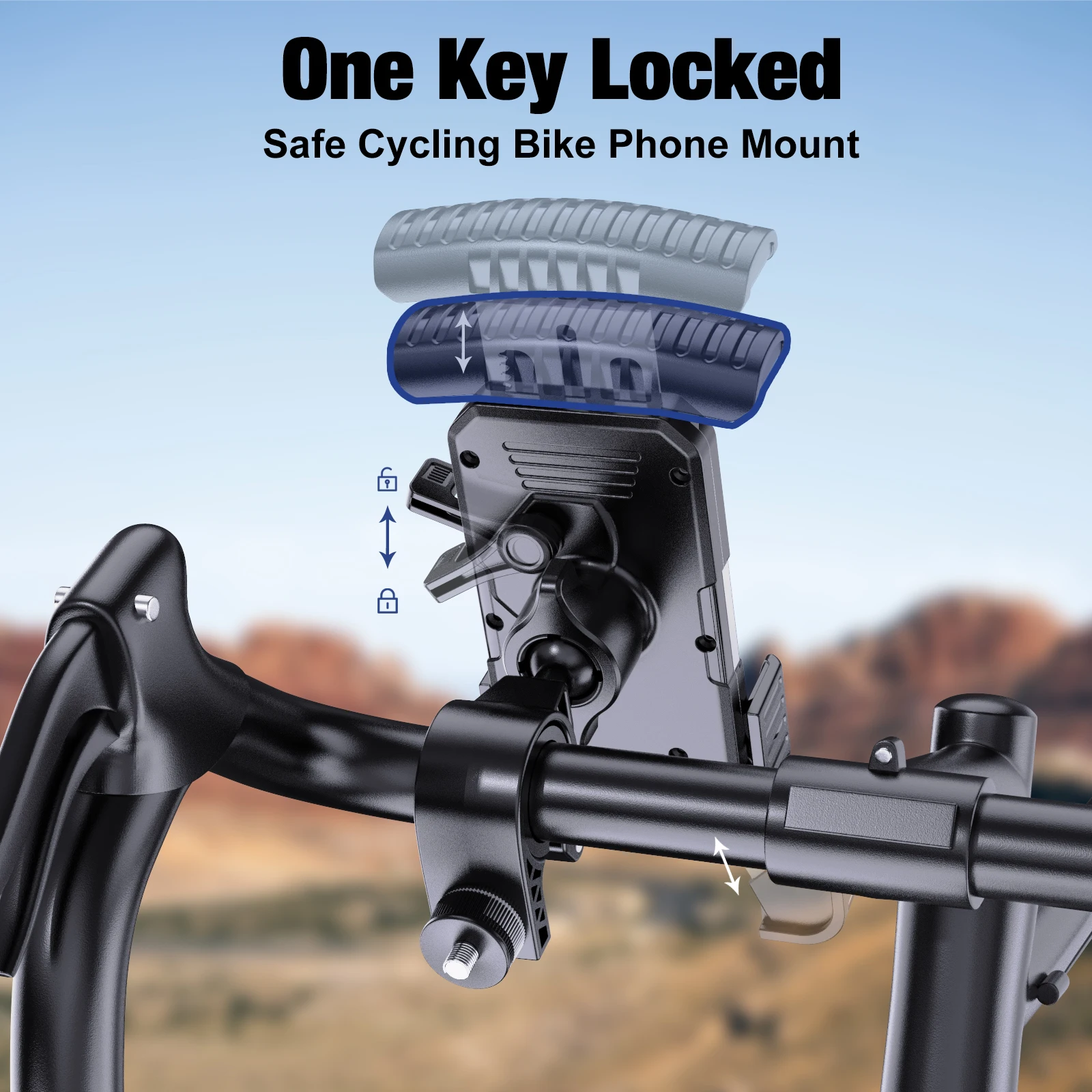 The Bike Phone Mount Are Cushioned For Protection Of The Phone And Handlebar. Has A High-Speed Lock Switch, You Can Double Lock Your Phone When You Ride At Bumpy Road. No Worry Your Phone Will Vibrate Loose When You Hit 100mps.