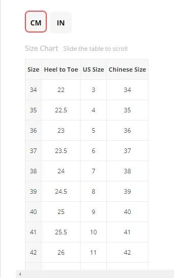 | Heels | About 9cm |