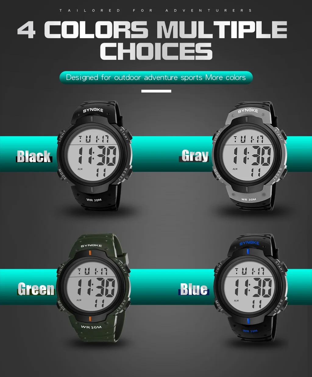 Outdoor multi-functional sports watch,Men’s Classic Stopwatch,Electronic LED Backlight Wristwatch,50m deep waterproof digital watch