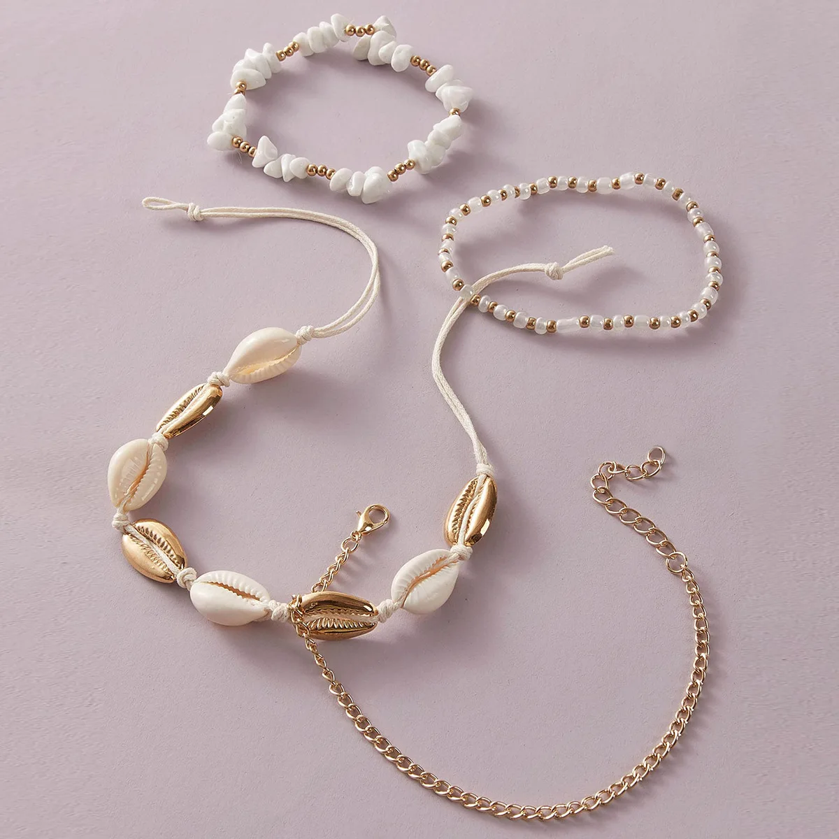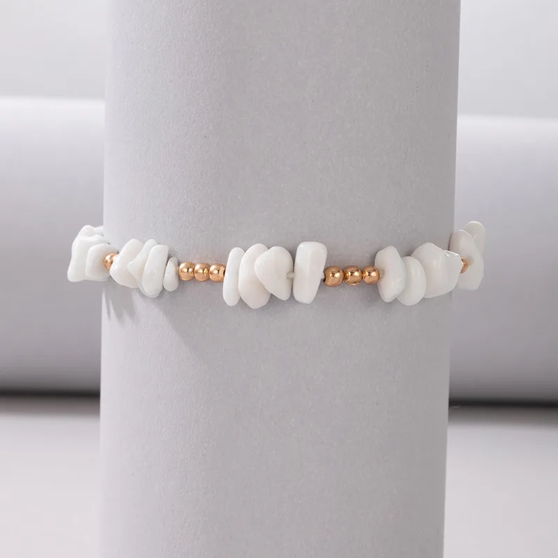 Summer Beach Crushed Stone Chain Anklet Set For Women Boho Shell Ankle Bracelet On The Leg Handmade