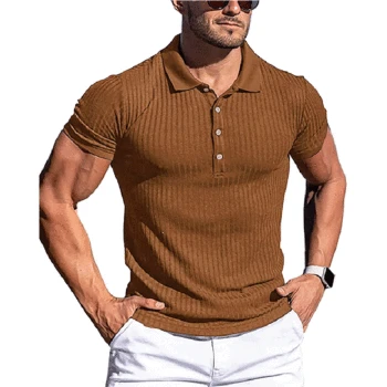 Summer Solid Color Turn-Down Collar Men Button Oversized T-shirt Short Sleeved Stripe