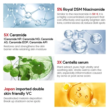 | Ingredient | Nicotinamide,5X Ceramide,3X Centella Asiatica,VC,VB5 |