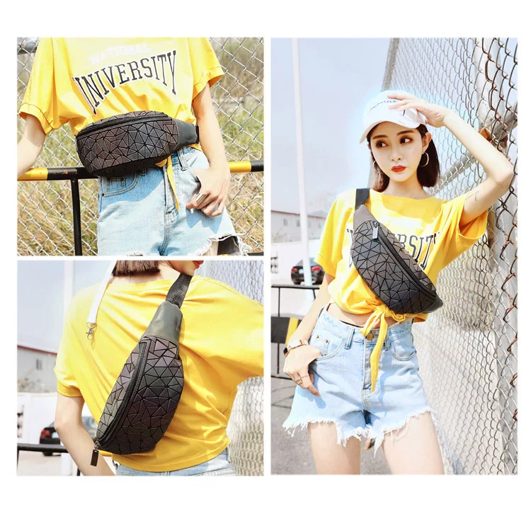 Fashion Luminous Waist Bags Women Waist Fanny Packs Belt Bag Luxury Brand Chest Handbag Geometric Waist Packs Mobile Phone Bag