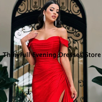 Thinyfull Sexy Mermaid Prom Evening Dresses Off The Shoulder Satin Party Prom Dress